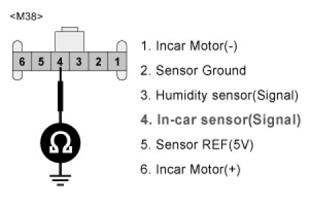 3. Measure resistance between terminal "4" of incar sensor and chassis ground.
