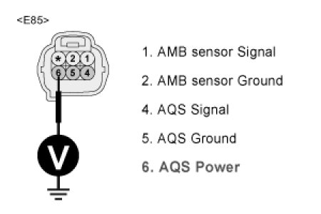 3. Measure voltage value between terminal "6" of AQS sensor and chassis ground
