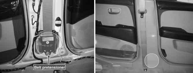 Seat Belt Pretensioner (hereinafter referred to BPT) is located at both side of center pillar. BPT tightens seat belt before air bag deploys to protect passenger from bumping against crush pad, steering wheel and front window. In BPT, there are a ignition circuit and cylinder for rewinding belt. Cylinder has piston that can rewind seat belt in it. Gas chamber generates expansive force of gases to push piston in cylinder.