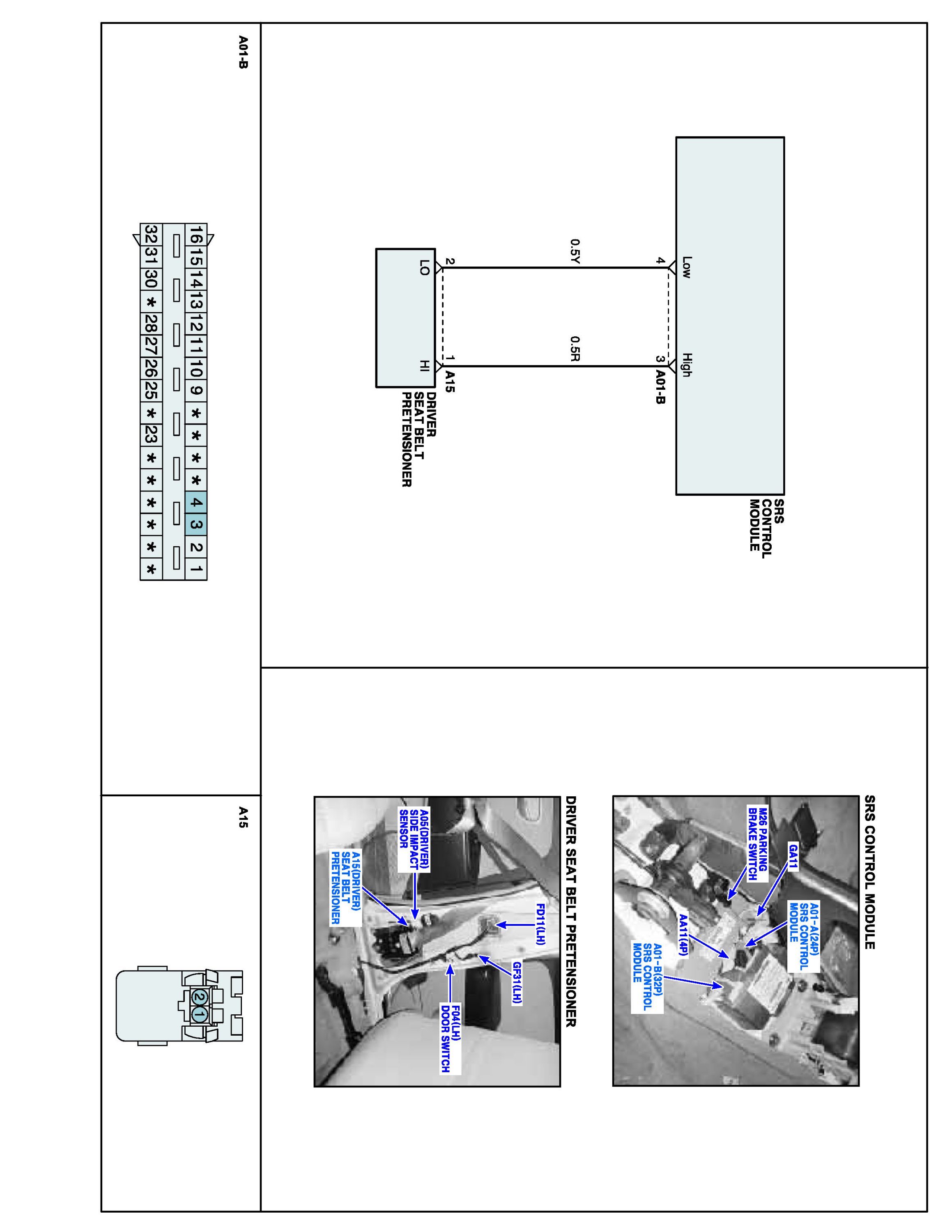The SRSCM sets DTC B1364 if there is a short to power in DBPT harness.