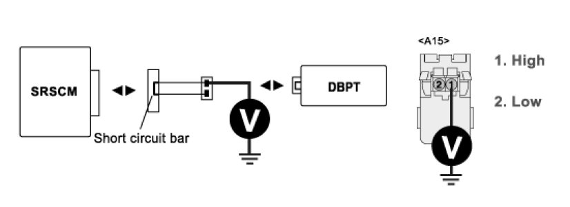 3. Disconnect DBPT connector and SRSCM main harness connector.