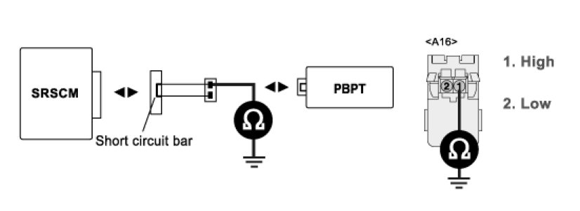 3. Disconnect PBPT connector and SRSCM main harness connector.