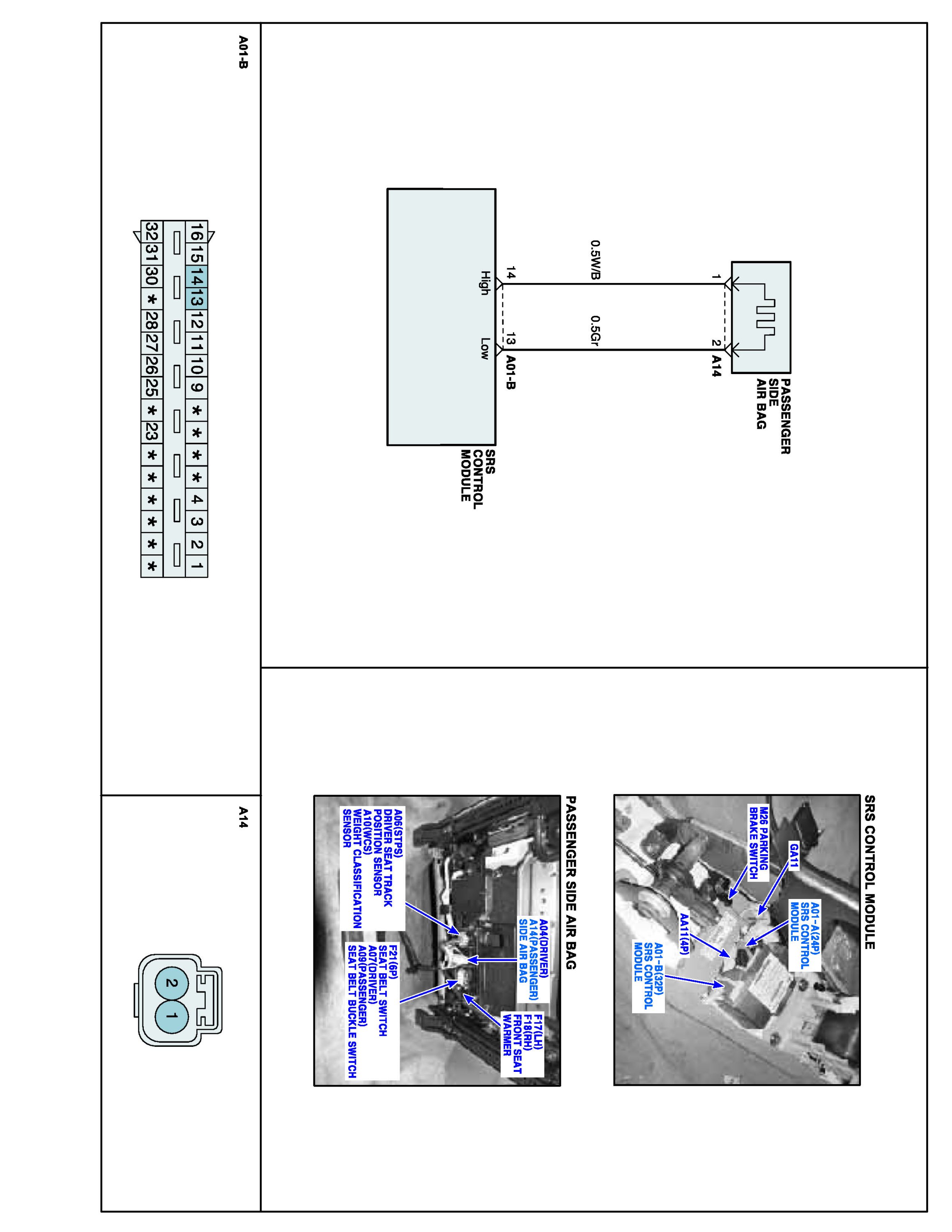 The SRSCM sets DTC B1385 if there is a short to power in PSAB harness.