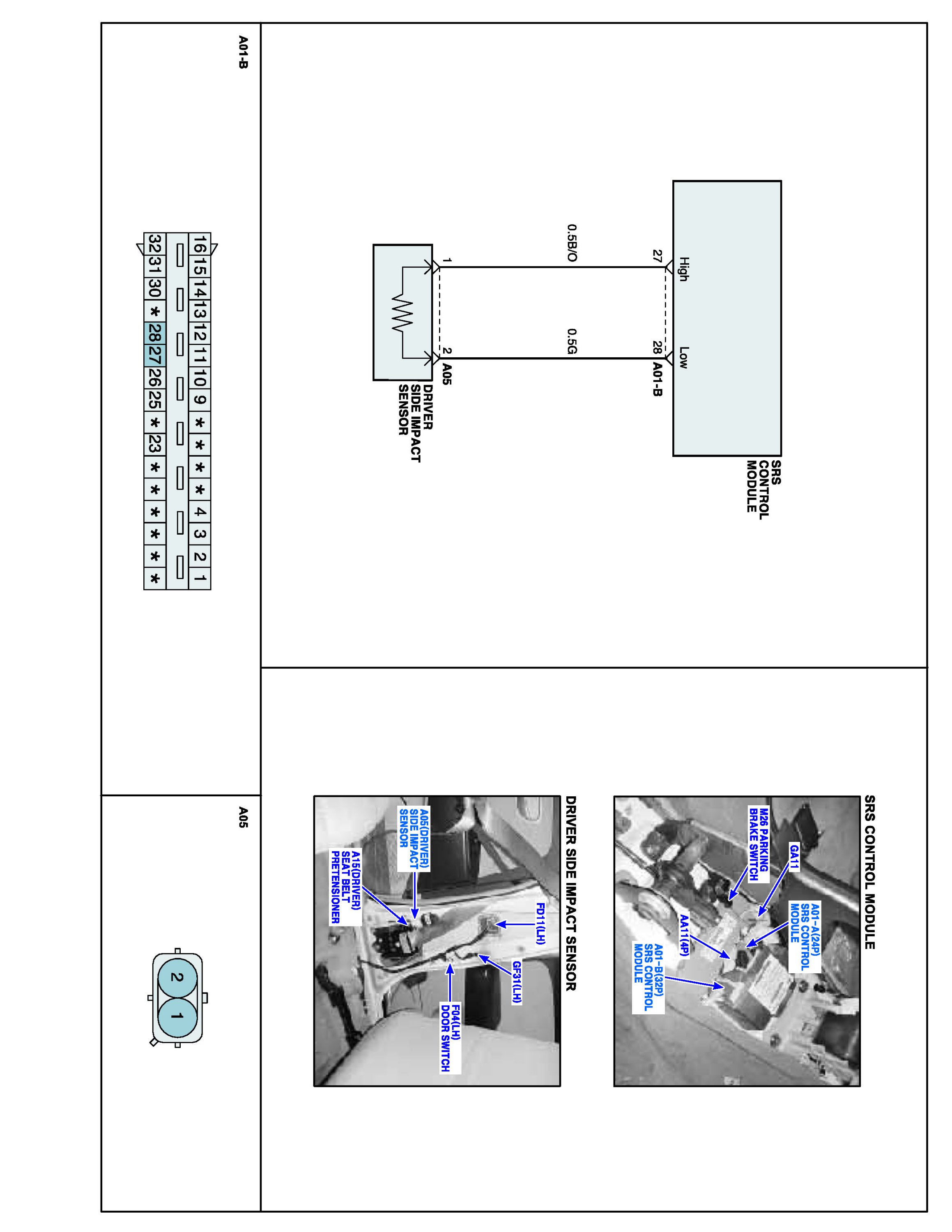 Side Impact Sensor (SIS) is located in both side of center pillar detects broad collision. When SIS delivers collision signal to SRSCM, SRSCM checks if safing sensor located in SRSCM detects collision. and if both SIS and safing sensor detects collision simultaneously, SRSCM operates side air bag.