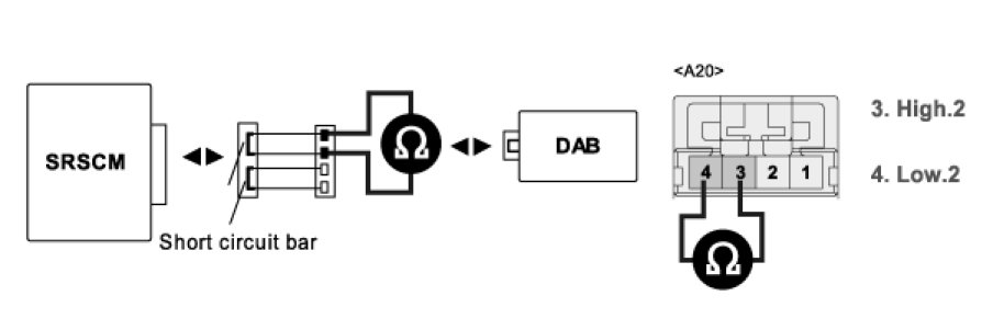 4. Measure resistance between terminal "3" and "4" of the DAB harness connector.