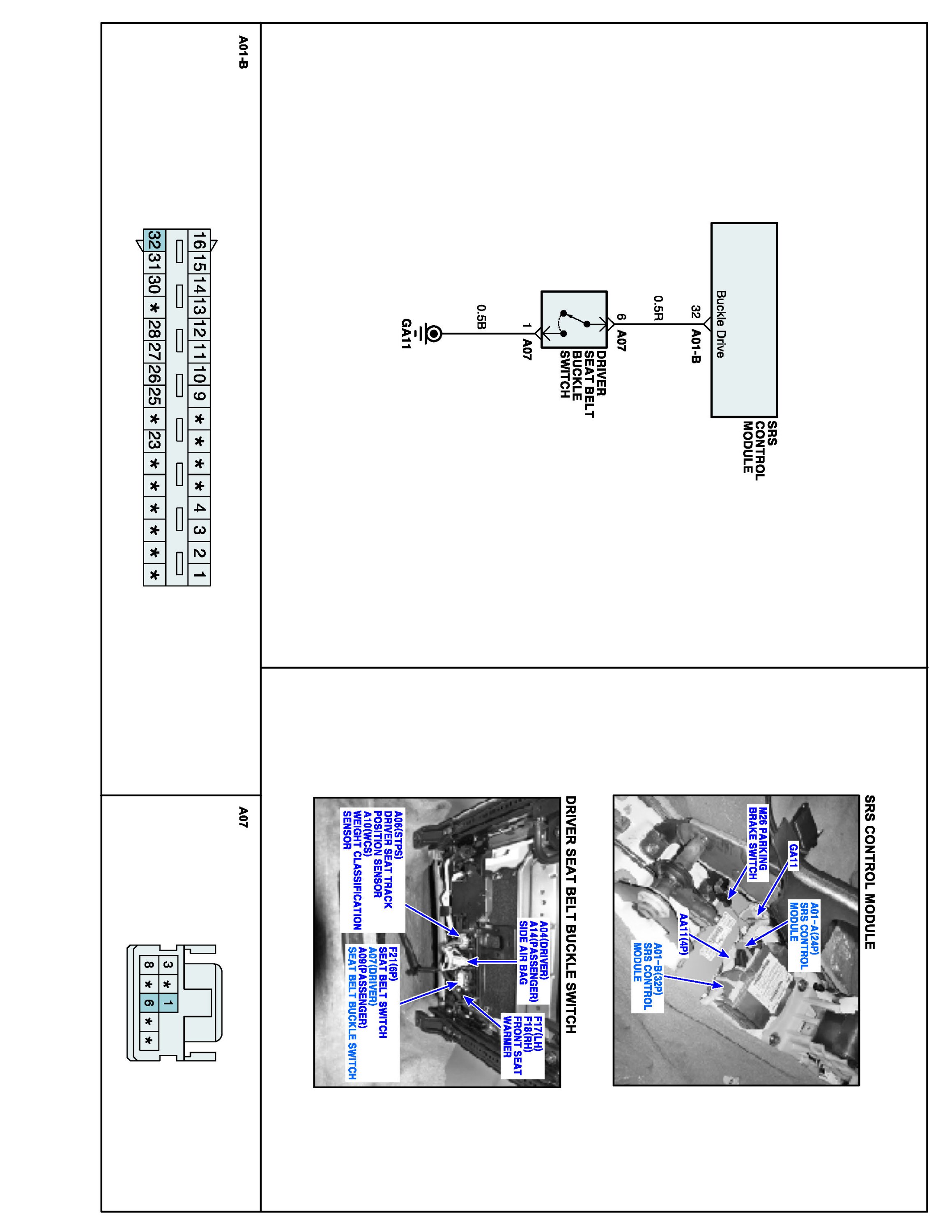 Seat-belt Buckle Switch (SBBS) is located in driver and passenger side seat. SRSCM checks if seatbelt is buckled by signal of SBBS.