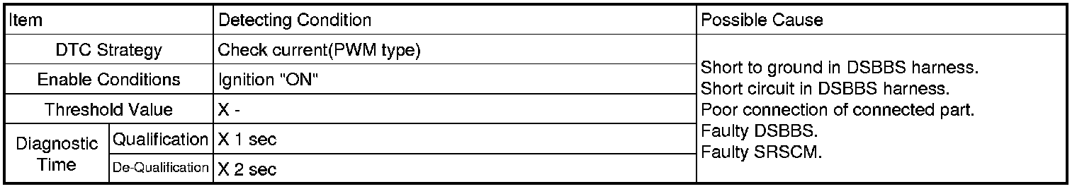 The SRSCM sets DTC B1512 if there is a short or short to ground in DSBBS harness.
