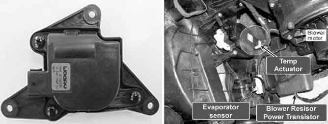 Temperature control actuator located at heater unit. It contains temp motor that changes temp door position and potentiometer that monitors position of temp door. Temperature control actuator regulates the temperature by the procedure as follows. Signal from control unit adjusts position of temp door by operating temp motor and then temperature will be regulated by the hot/cold air ratio decided by position of temp door. In operation, potentiometer delivers temp door position transformed into voltage value to A/C ECU.