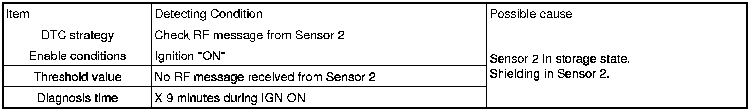 This DTC indicates that the sensor has either failed to learn or has successfully learned and the receiver did not receive messages from the learned sensor for 9 minutes.