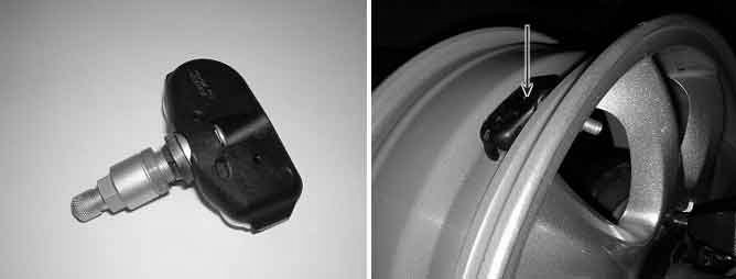 Each vehicle wheel is fitted with a Wheel Electronic (WE) sensor unit attached to the valve on the inside of the wheel.