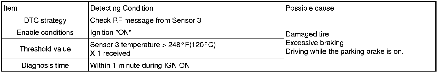 This DTC indicates that the Sensor 3 has seen a temperature in excess of 248 °F (120 °C). This warning is to notify the driver that there is a problem that may affect sensor performance.