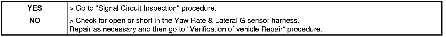 2. Measure voltage between terminal "1" of the Yaw Rate & Lateral G sensor harness connector and chassis ground.