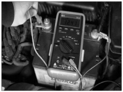 3. Measure voltage between terminal (+) and (-) of battery while maintaining ENG. RPM 2,500 RPM over 2 minutes.