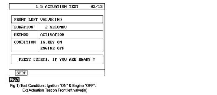 3. Select the "Actuation Test" mode on the scantool.
