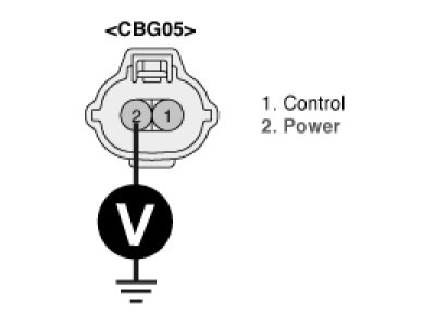 2. Measure voltage between terminal 2 of the oil control valve harness connector and chassis ground.