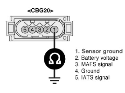 3. Measure resistance between terminal 1 of the sensor harness connector and chassis ground