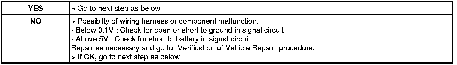 3. Is "MASS AIR FLOW (V)" within the specification ?