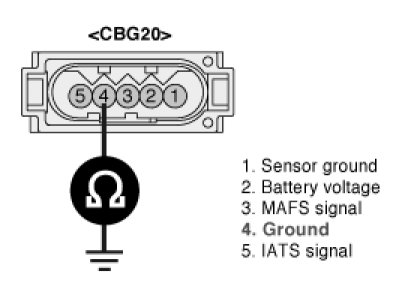 3. Measure resistance between terminals 4 of the sensor harness connector and chassis ground.