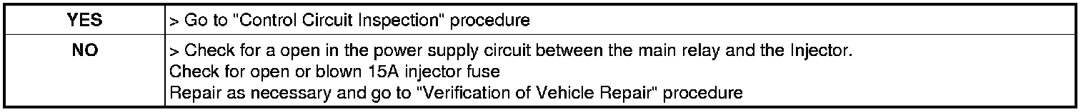 1. Measure voltage between terminal 2 of the injector harness connector and chassis ground