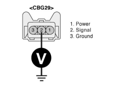4. Measure voltage between terminal 1 of the sensor harness connector and chassis ground
