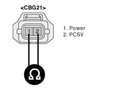Measure resistance between terminals 1 and 2 of the PCSV connector (Component side)