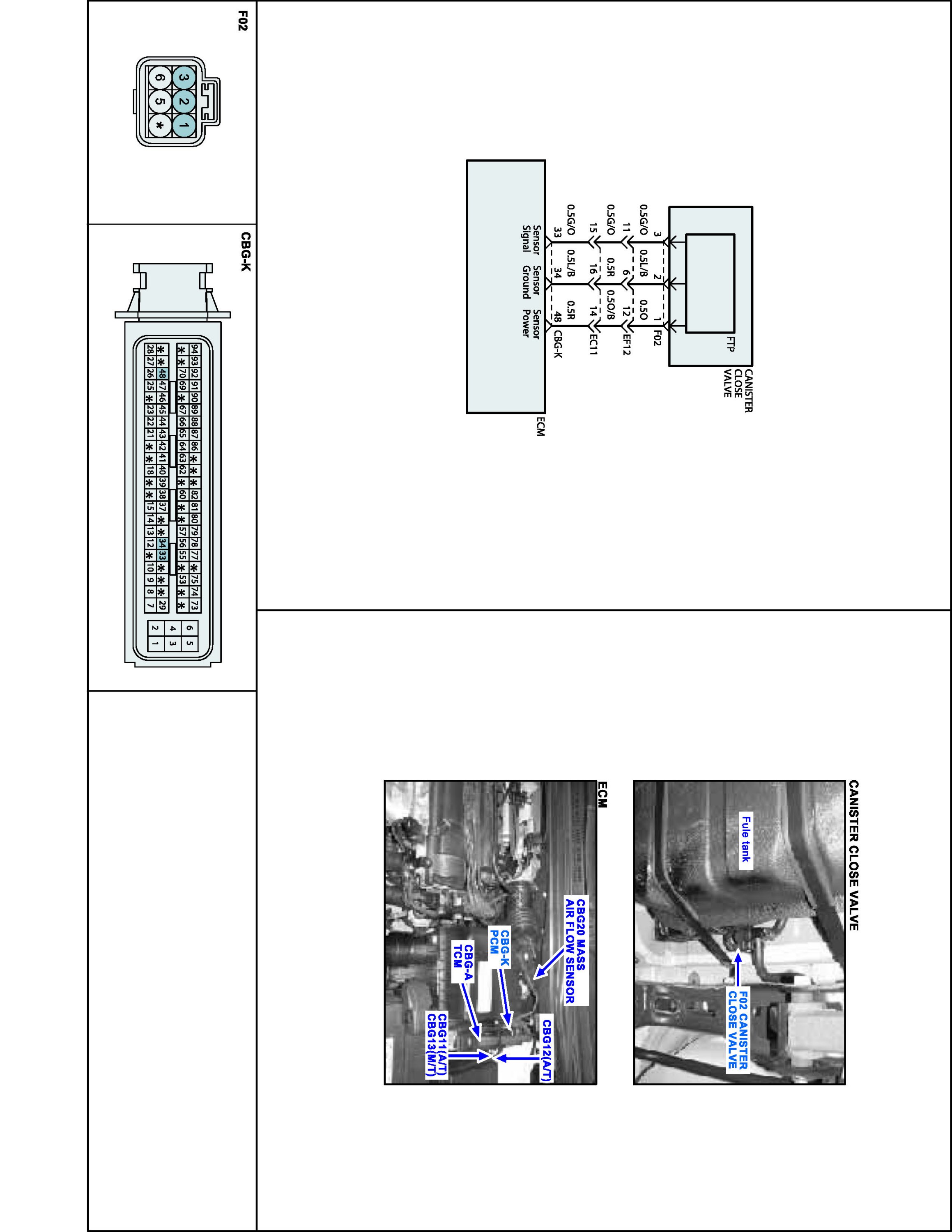 The evaporative emission control system prevents hydrocarbon vapors from escaping from the fuel tank into the atmosphere where they could form photochemical smog. Gasoline vapors are collected in the charcoal canister. The Fuel Tank Pressure Sensor (FTPS) is an integral part of the evaporative monitoring system. The ECM monitors the FTPS signal to detect vacuum decay and excess vacuum. The FTPS measures the difference between the air pressure inside the fuel tank and outside air pressure to check the purge control solenoid valve operation and for leak detection in the evaporative emission control system by monitoring pressure and vacuum levels in the fuel tank during the purge control solenoid valve operating cycles.