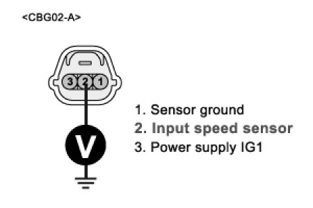 3. Measure voltage between terminal "2" of the INPUT SPEED SENSOR harness connector and chassis ground.