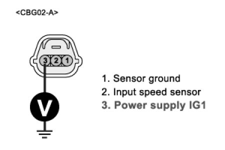 3. Measure voltage between terminal "3" of the INPUT SPEED SENSOR harness connector and chassis ground.