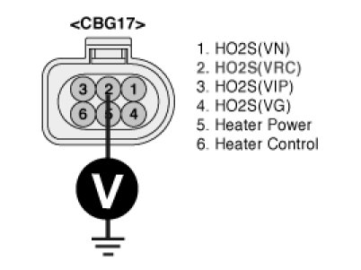 3. Measure voltage between terminal 2 of the HO2S harness connector and chassis ground.