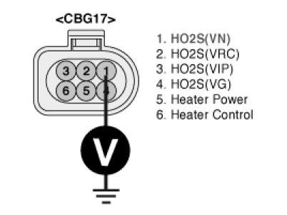 3. Measure voltage between terminal 1 of the HO2S harness connector and chassis ground.