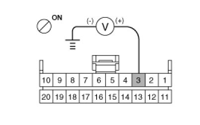 2. Measure the voltage between terminal 3 of the cluster harness side connector(M01-8) and body ground.