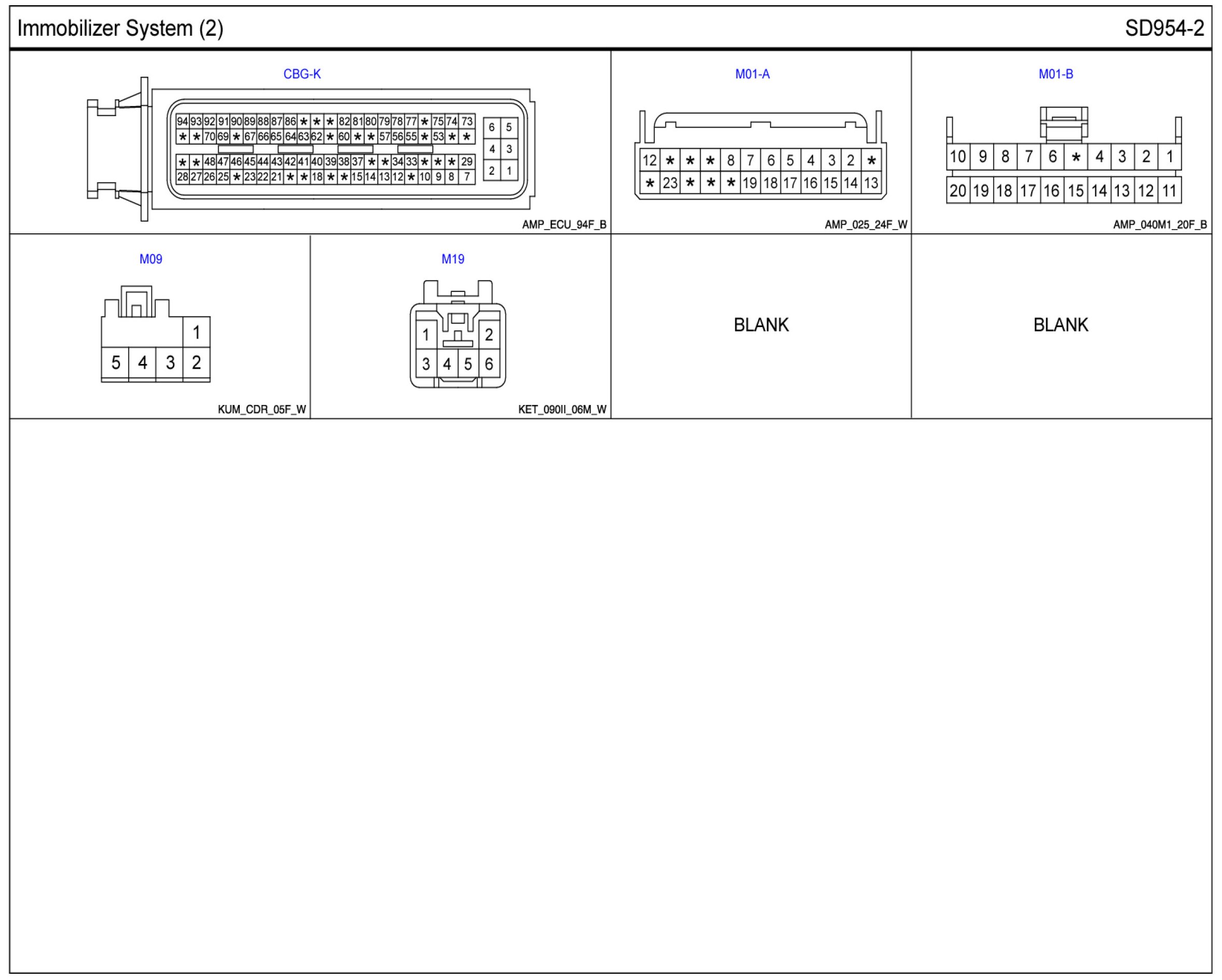 Immobilizer System Connector Pin Outs: