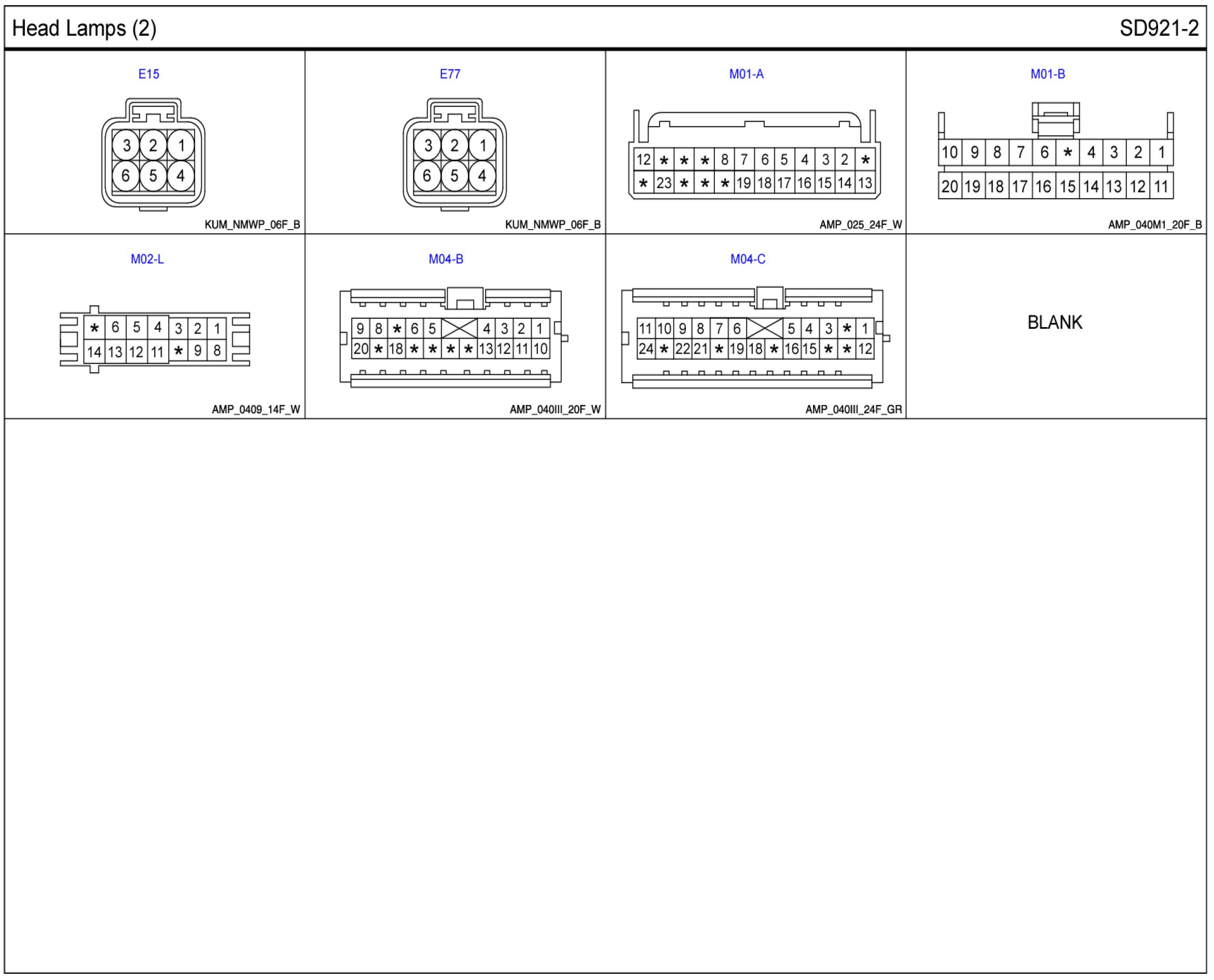 Head Lamps Connector Pin Outs: