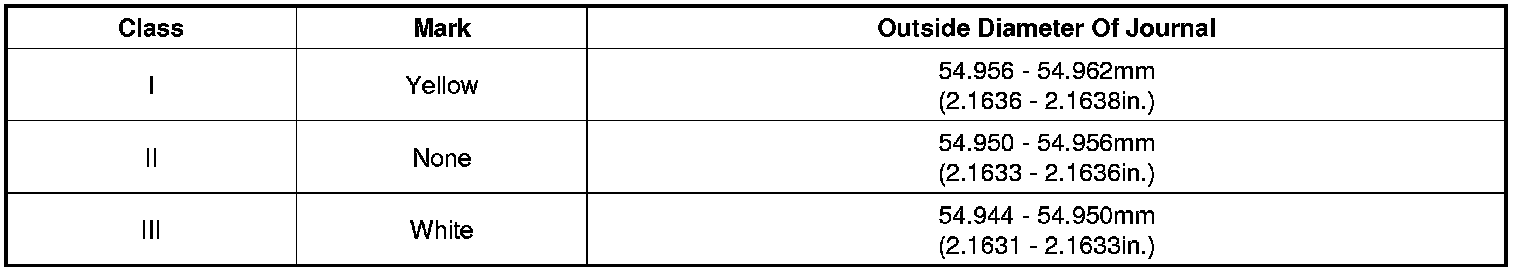 If the proper clearance cannot be obtained by using the appropriate larger or smaller bearings, replace the crankshaft and start over.