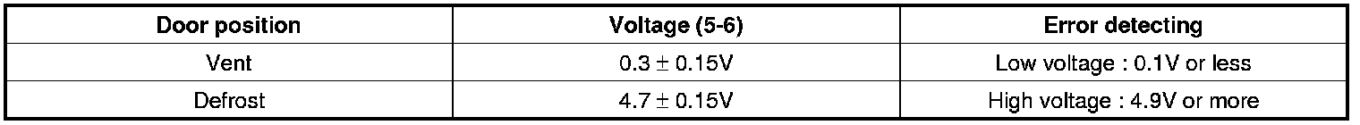 3. Verify that the mode control actuator operates to the defrost mode when connecting 12V to the terminal 3 and grounding terminal 4.