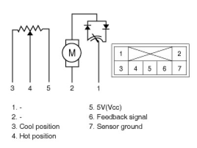 3. Verify that the temperature control actuator operates to the hot position when connecting 12V to the terminal 3 and grounding terminal 4.