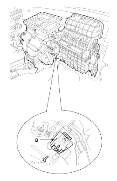 2. Disconnect the power mosfet connector (A) at the connecting part between heater and blower unit.