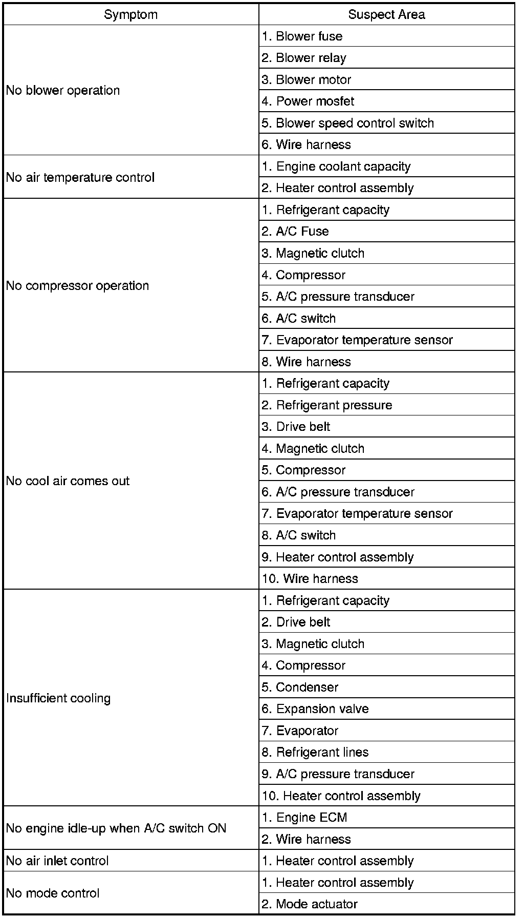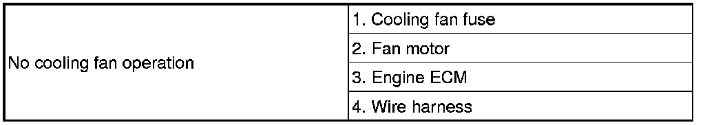Use the table below to help you find the cause of the problem. The numbers indicate the priority of the likely cause of the problem. Check each part in order. If necessary, replace these parts.