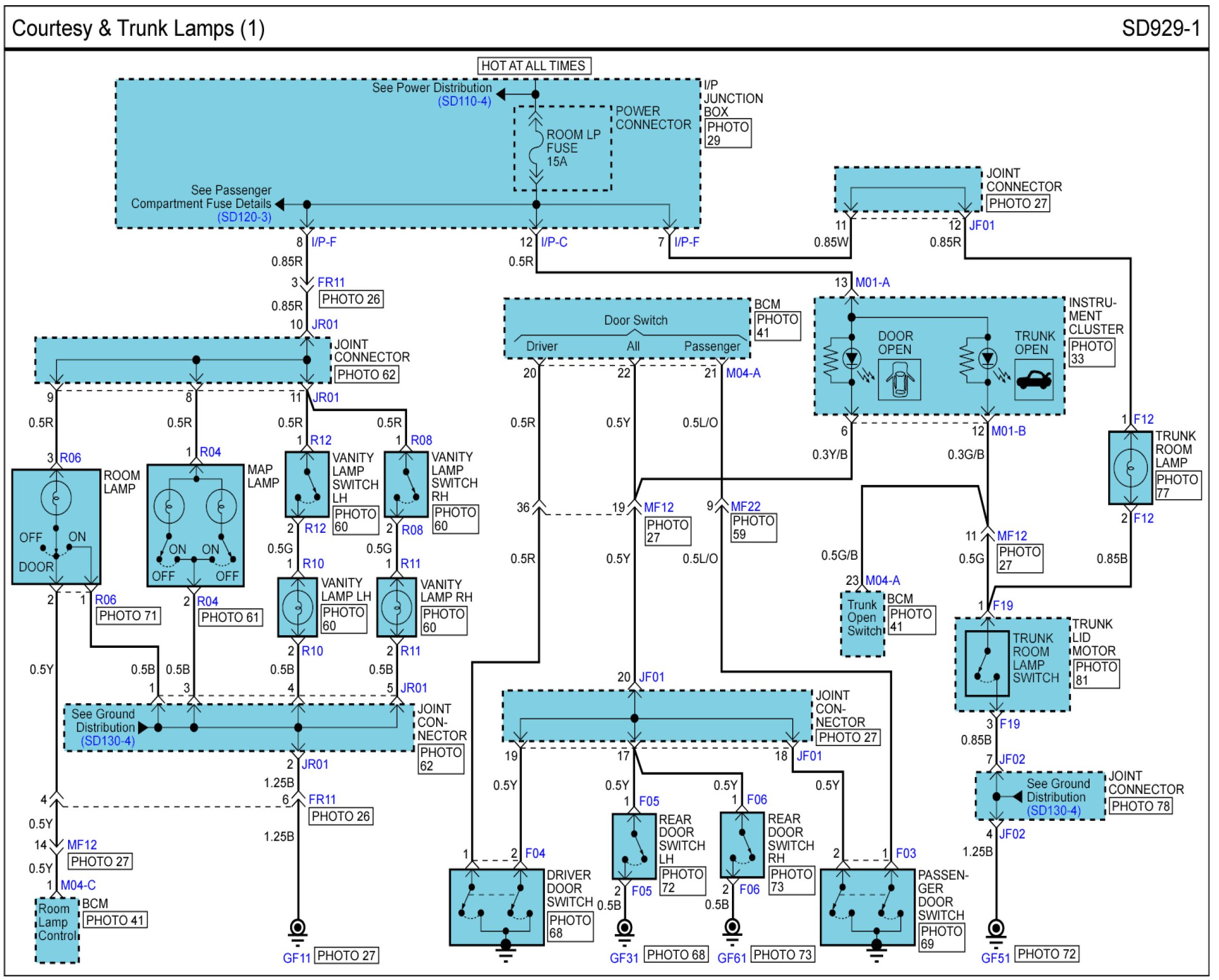 Locations: Location photographs (references to PHOTOS) referred to within these diagrams can be found via the photo number at the vehicle level under Locations by Photo Number. Component Locations