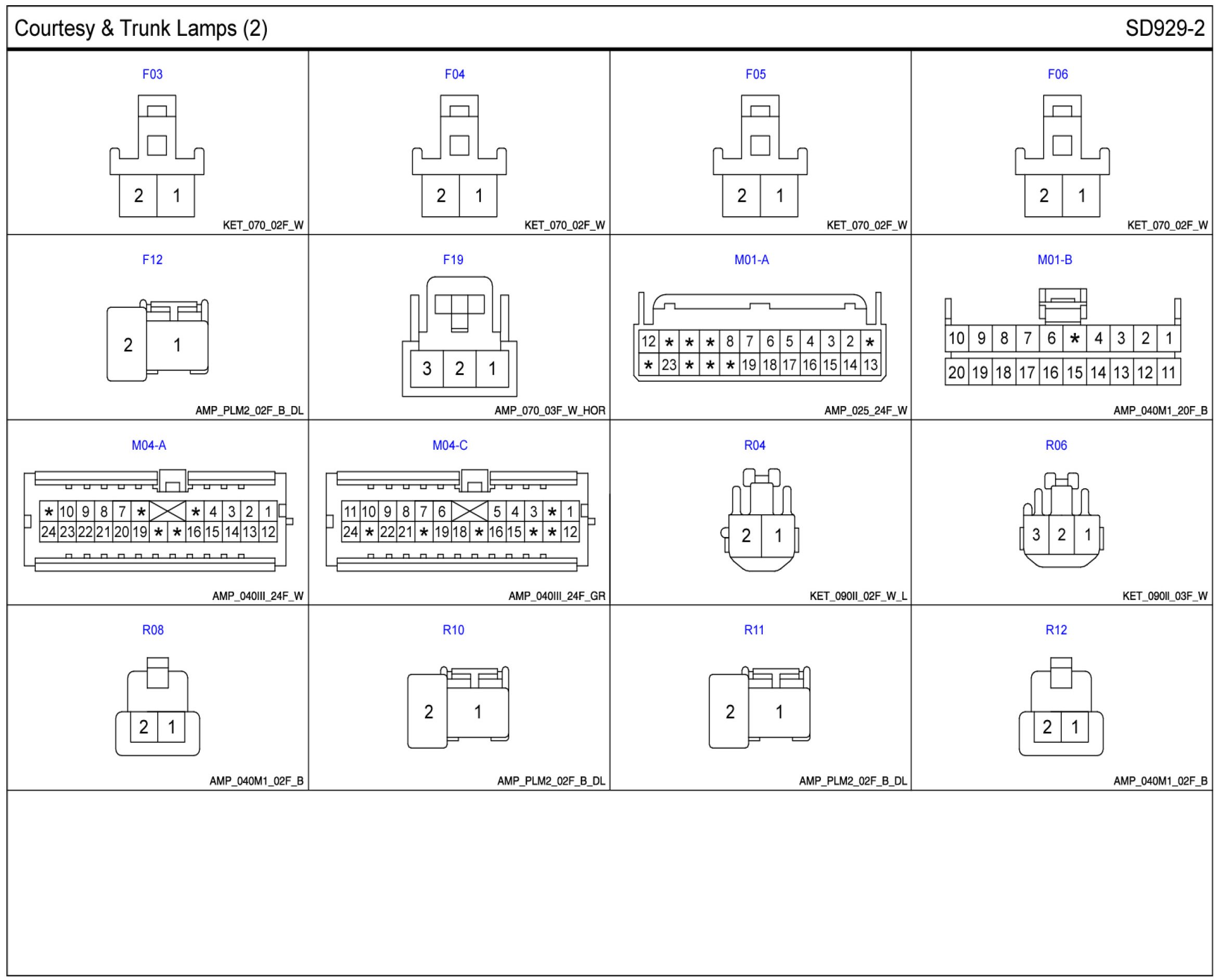 Courtesy & Trunk Lamps Connector Pin Outs: