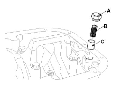Install relief plunger(A) and spring(B) into the front case hole, and install the plug(A).