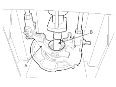 (3) Remove the hub assembly (B) from the knuckle assembly (A) by using press.