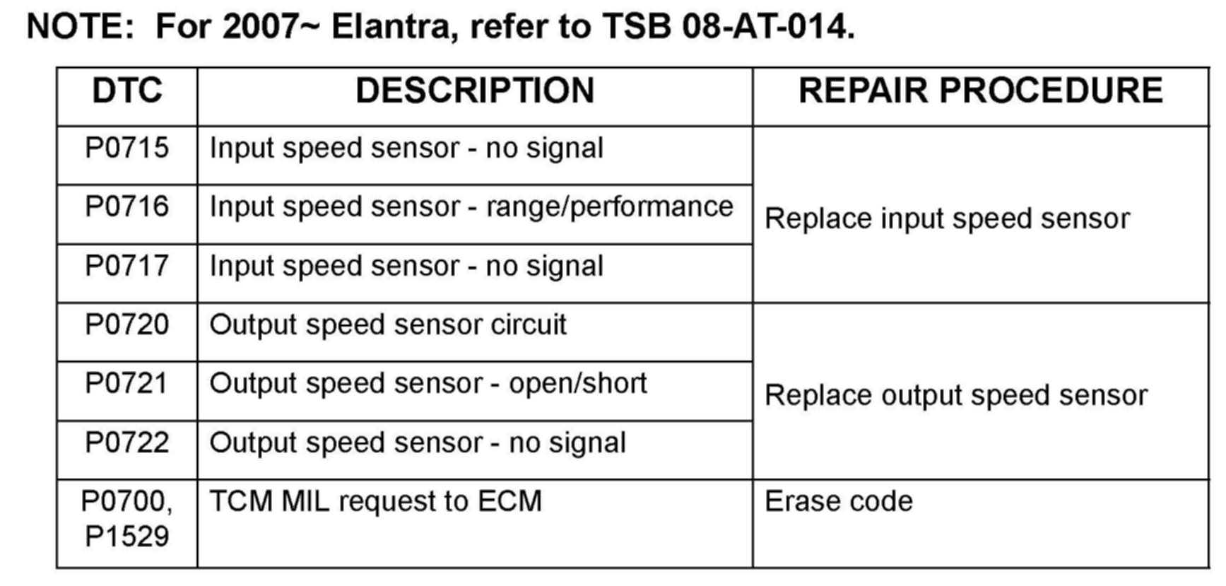 AUTOMATIC TRANSAXLE DIAGNOSTIC TROUBLE CODES P0715, P0716, P0717, P0720, P0721 & P0722
