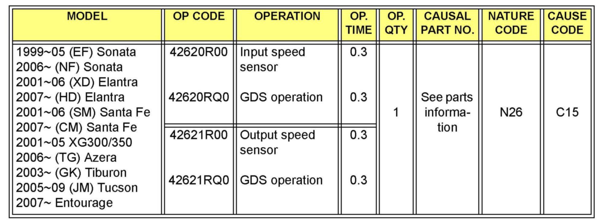 ^ "Input speed sensor" and "output speed sensor". Drive the vehicle and monitor the input and output speed sensors. If the sensors show: