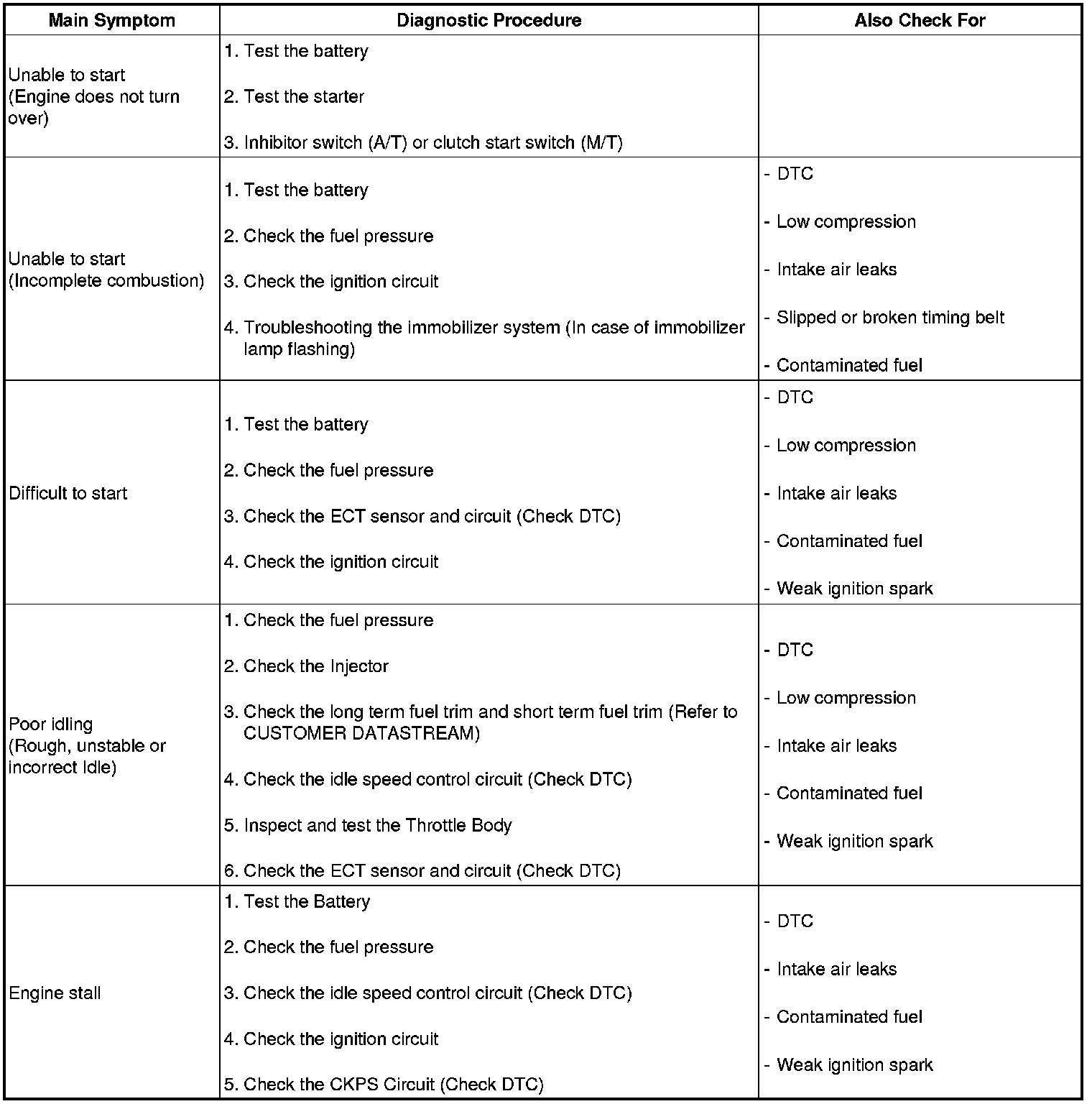 Symptom Troubleshooting Guide Chart