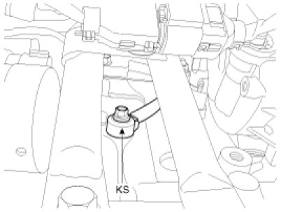 Knocking is a phenomenon characterized by undesirable vibration and noise and can cause engine damage. Knock Sensor (KS) senses engine knocking and the cylinder block. When knocking occurs, the vibration from the cylinder block is applied as pressure to the piezoelectric element. At this time, this sensor transfers the voltage signal higher than the specified value to the ECM and the ECM retards the ignition timing. If the knocking disappears after retarding the ignition timing, the ECM will advance the ignition timing. This sequential control can improve engine power, torque and fuel economy.