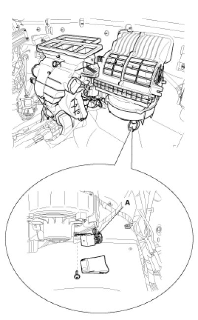 3. Remove the blower relay (A) after loosening the mounting screw.