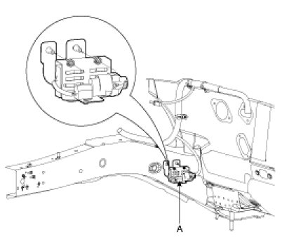 2. Disconnect the connector and then remove the DRL resistor (A) on the front right side inner member after loosening the nuts (2EA).