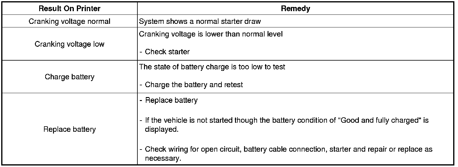 Take a relevant action according to the test results by referring to the starter test results as given below.
