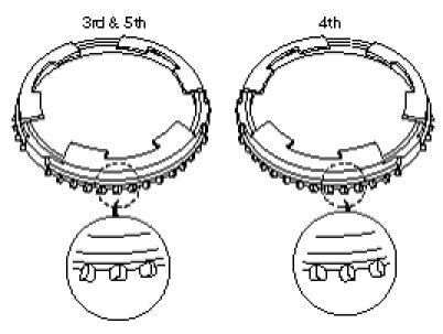 When installing the synchronizer ring, make sure that the fingers of synchronizer ring are seated correctly in the grooves of the 3rd&4th synchronizer hub.